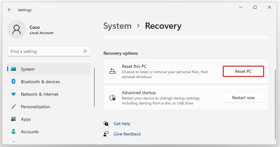 解决此问题的最后一步是重置 Windows 操作系统。这是您需要做的。