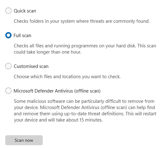 5. 接下来,单击“扫描选项”并选择“全面扫描”。