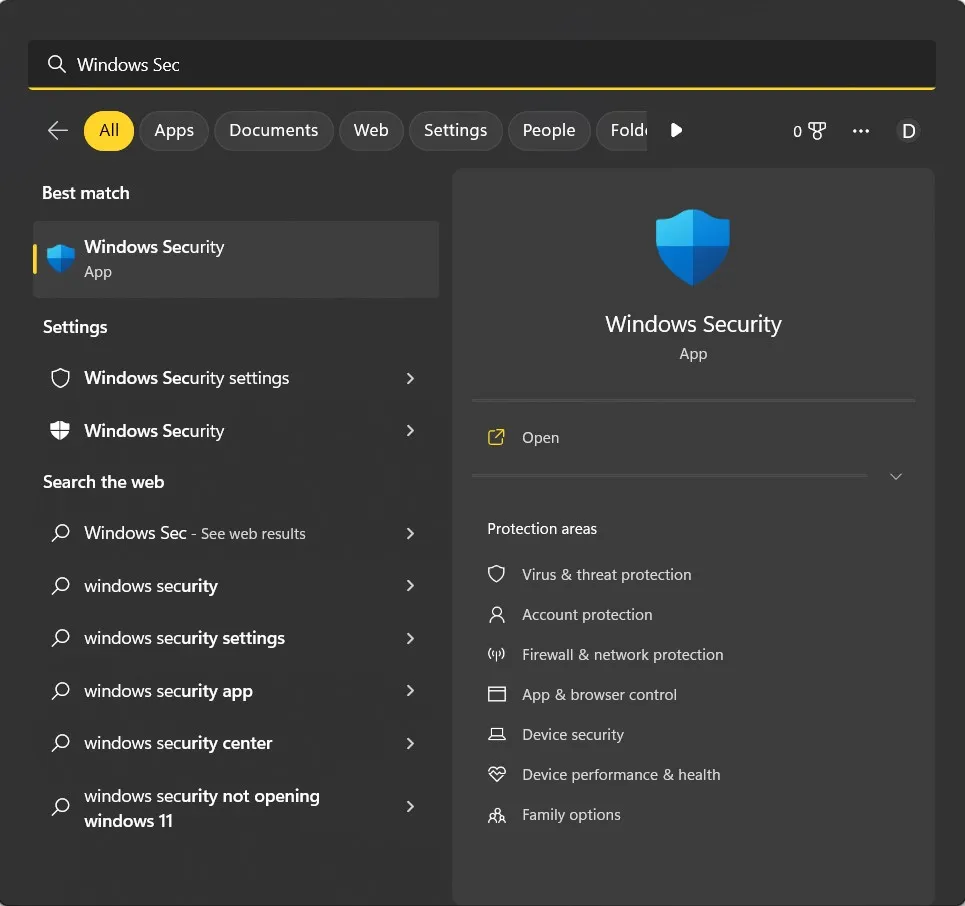 2. 按 Windows 键并输入“Windows 安全”。