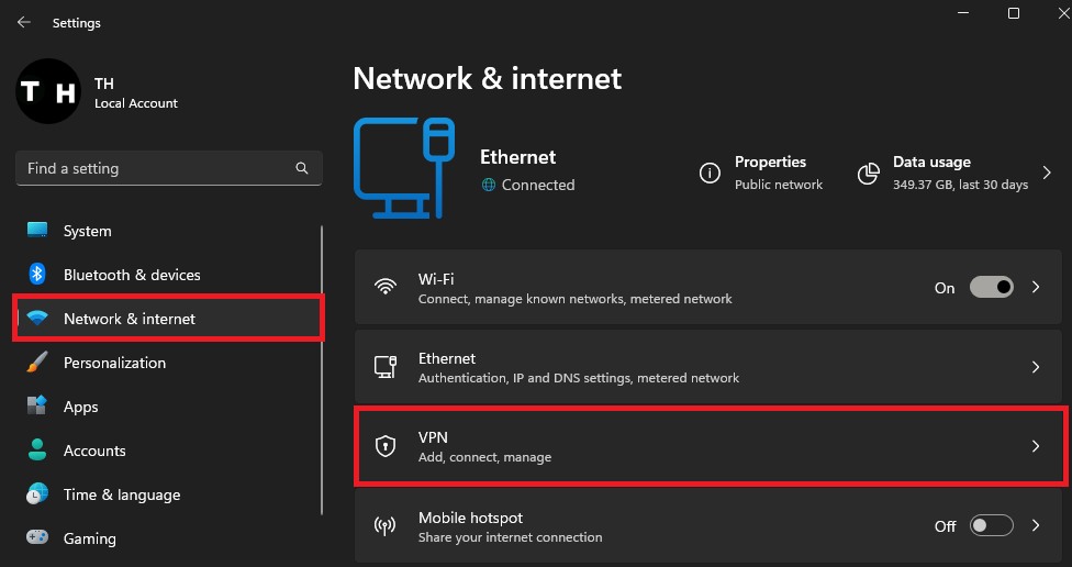 确保您使用的是可靠的网络连接,或使用其他网络连接来查看此问题是否与网络相关。建议在使用 Bing Chat 时禁用任何 VPN 或代理连接,因为它可能会标记您共享帐户。打开您的 Windows 设置。在网络与互联网部分,选择 VPN 并确保其已断开连接。如果您正在寻找可靠的 VPN 连接,我们建议私人VPN。