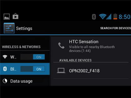 步骤 2:从屏幕顶部的通知栏激活蓝牙功能,然后将手机连接到另一个蓝牙设备。