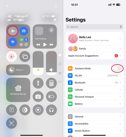 步骤 3.等待几秒钟并关闭飞行模式以刷新。