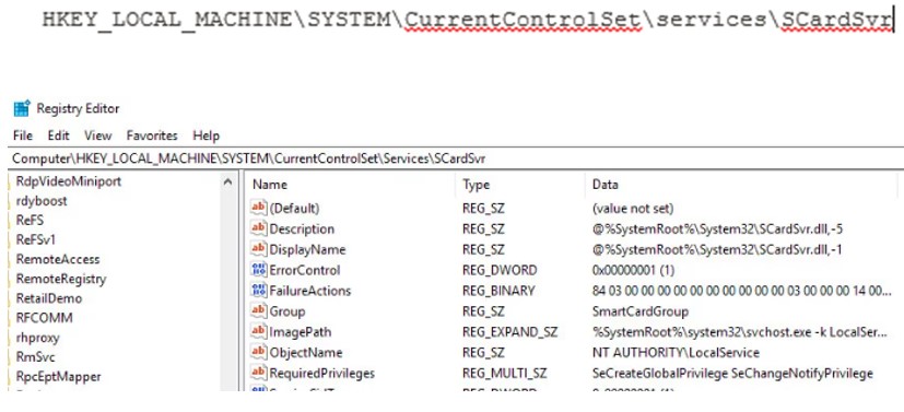 使用注册表编辑器如果第一个解决方案失败,则更改智能卡状态。您可以使用编辑器更改 SCardSvR 服务状态,而不会遇到“当文件已存在时无法创建文件”错误。以下是如何使用注册表编辑器: