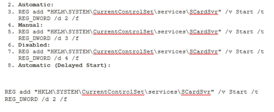 3) 停止智能卡服务后,键入以下命令以更改您认为合适的状态: