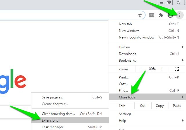 要访问Chrome Extensions,请单击Chrome主菜单,然后选择“扩展”内部“更多工具”选项。