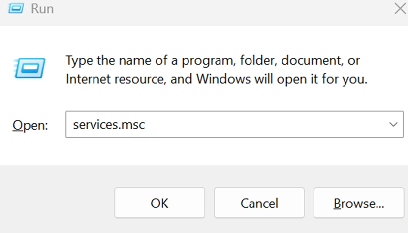 - 按 Windows + R,输入 services.msc,然后按 Enter。