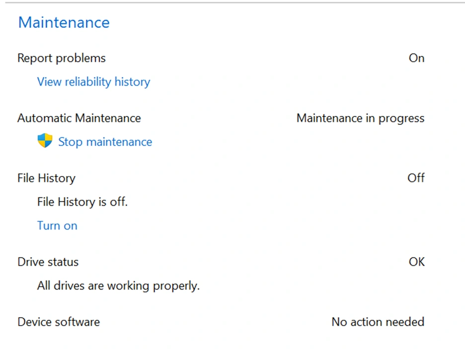修复 DISM 主机服务进程问题的另一种方法是暂时禁用可能重复启动 DISM 的计划维护。以下是步骤。