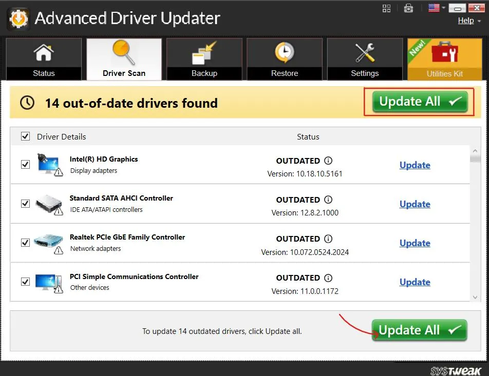 一些专家建议过时的驱动程序可能会导致错误 1068 问题。这是一种轻松更新所有电脑驱动程序的快速方法。