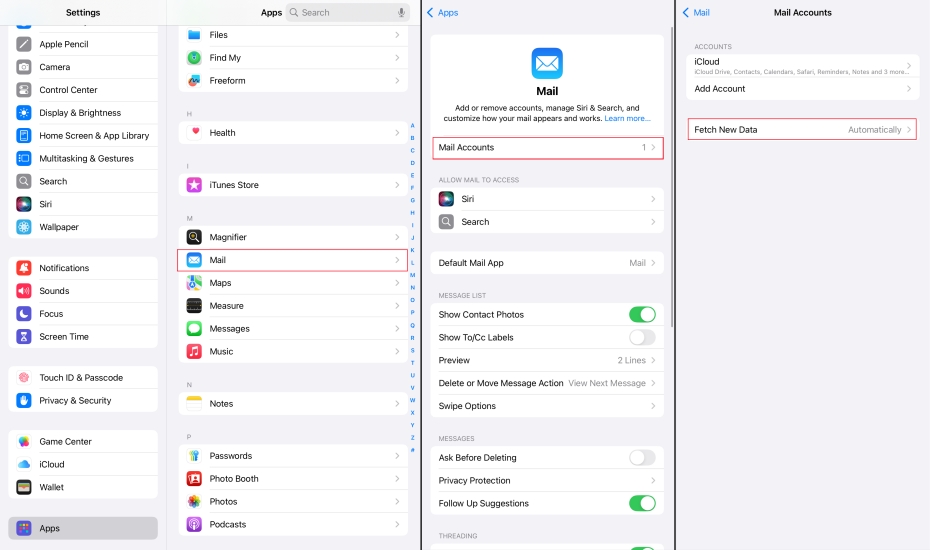 步骤1。前往iPad设置 > 应用程序 > 邮件。