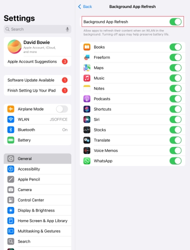 如果您启用了后台应用程序刷新,这些应用程序将在后台运行任务。即使您不主动使用它,应用程序也可能会在后台悄悄更新内容。这些后台活动会在幕后耗尽 iPad 电池的电量。