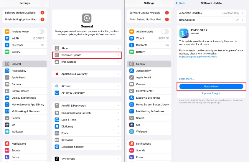 步骤2。轻敲立即更新当有可用更新时升级您的 iPad 系统。