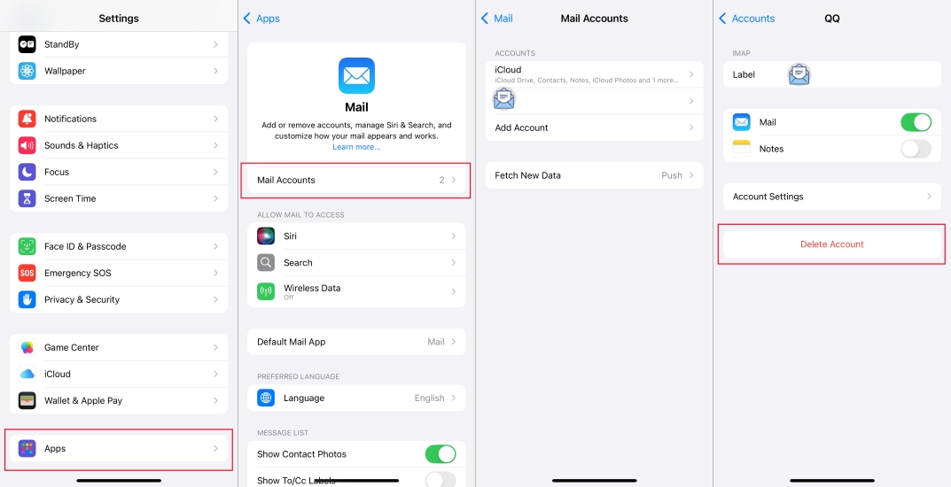 步骤1。在您的 iPhone 上,前往设置 > 应用程序并点击邮件。
