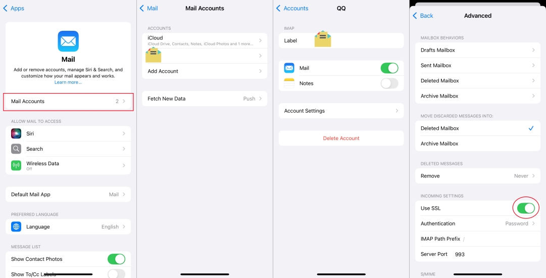 步骤2。轻敲邮件账户并选择您的邮件帐户。