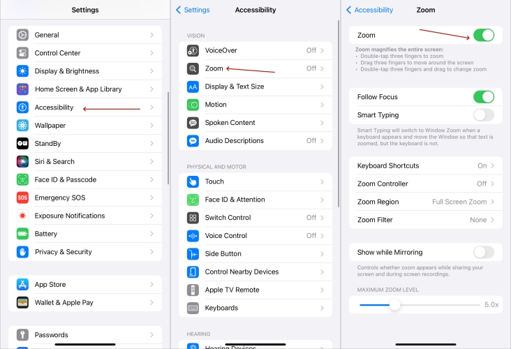 除了变焦和颜色过滤器,您还可以检查是否已打开减少白点在可访问性,这也会在iPhone上引起灰色屏幕。