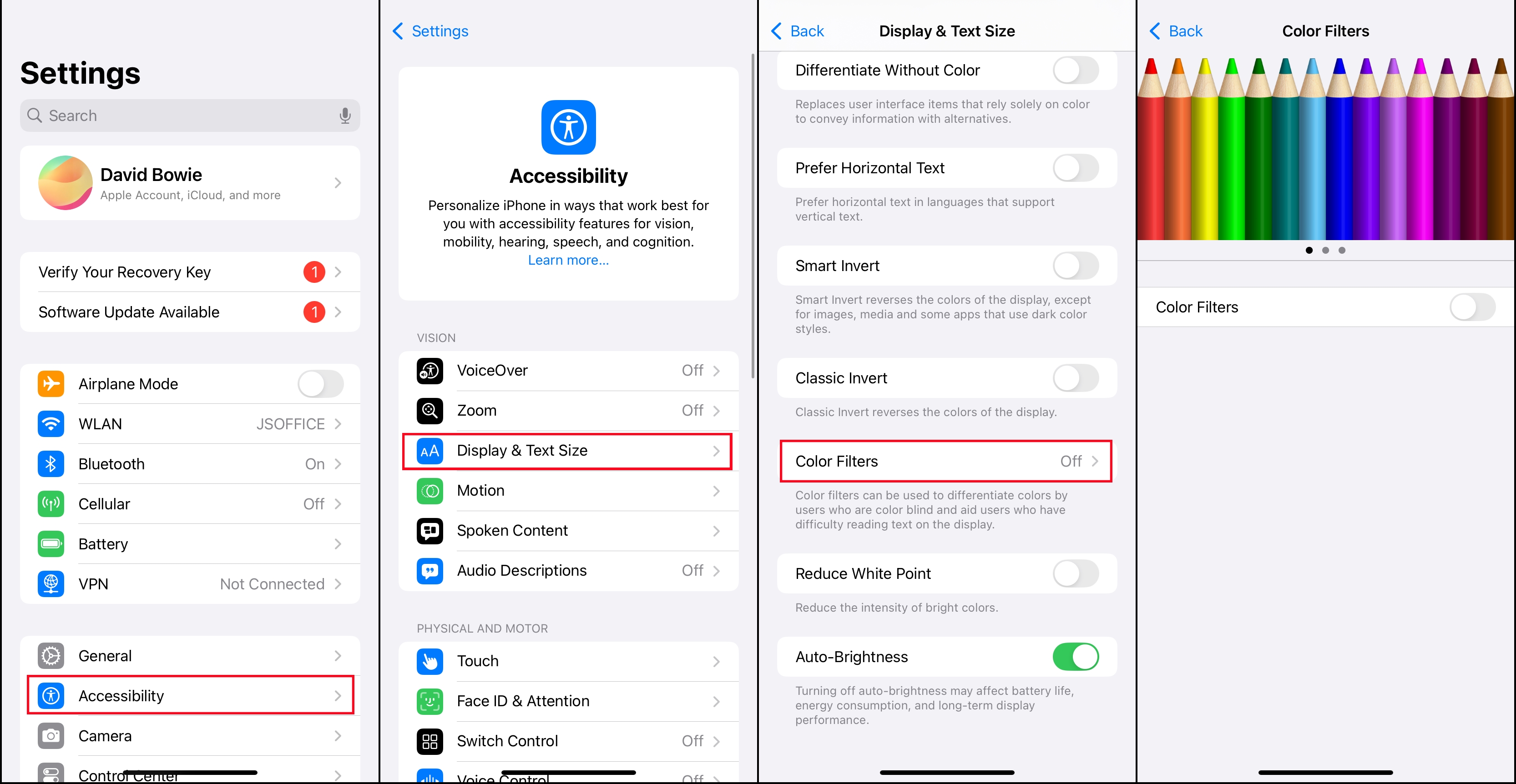 颜色过滤器是iPhone提高屏幕颜色可识别性的可访问功能。如果由于错误而打开颜色过滤器并选择灰度模式,则整个屏幕将变成黑色和白色的音调,使其看起来像灰色屏幕。
