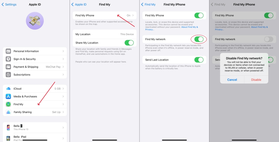 关闭“iPhone 关机后可查找”选项很容易。您只需在 iPhone 上禁用“查找我”功能,然后在准备关闭设备时就不会看到“关机后可查找 iPhone”的提示。以下是具体方法。