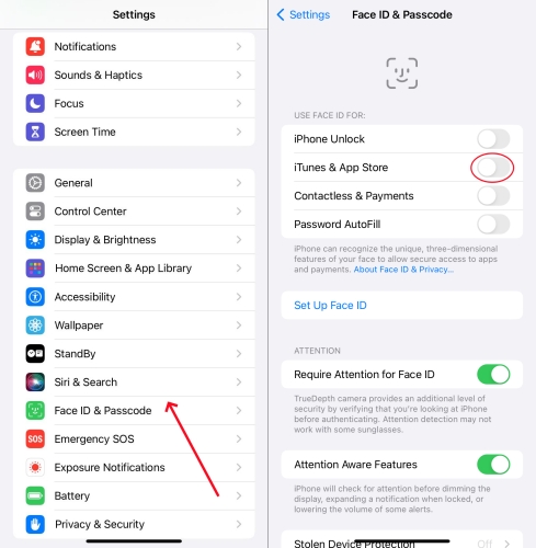 解决方案 7. 关闭 iTunes 和 App Store 的 Face ID 或 Touch ID