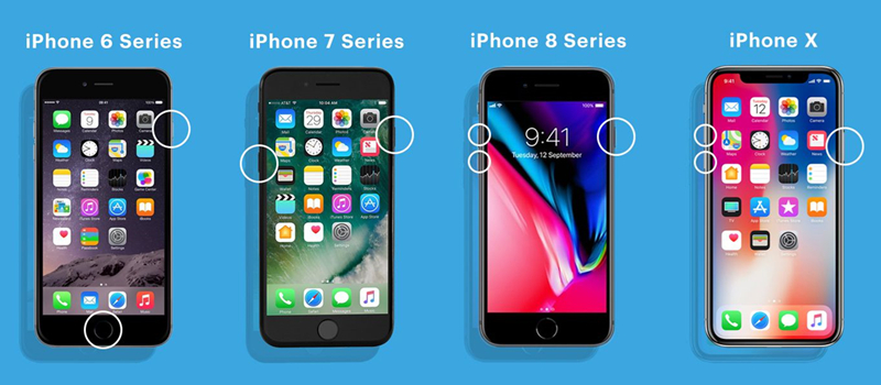 对于 iPhone 7:按住音量调低按钮和电源按钮同时。当苹果标志出现时,松开两个按钮。