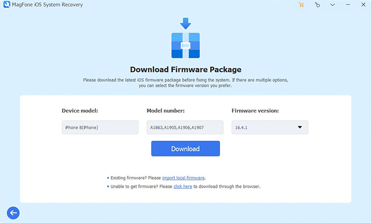 设备信息将出现在软件的屏幕上。您可以仔细核对信息,并手动更正错误信息。然后您可以单击“下载”按钮下载最新的 iOS 固件包。