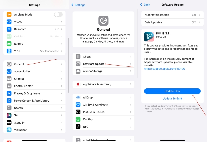 步骤1。导航至设置 > 常规,然后点击软件更新.