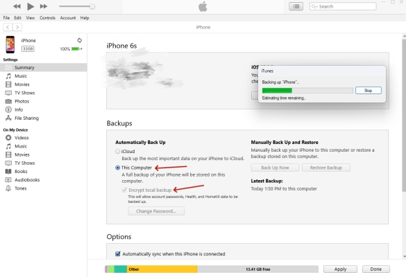 答2:如果您的 iCloud 已满,您可以通过电脑上的 iTunes 备份 iPhone。方法如下。
