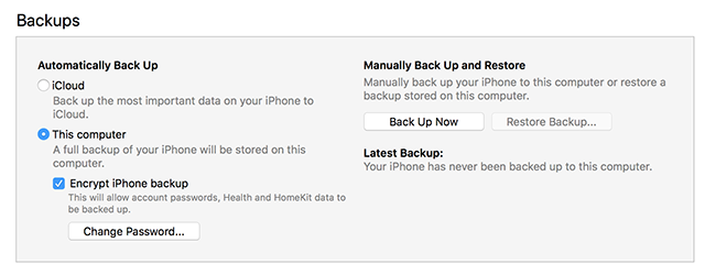 方法2.通过恢复 iTunes 备份密码修复 iPhone 备份密码从未设置的问题