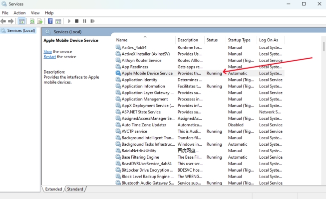 重新启动 Apple Mobile Device Service 是修复该错误的另一种选择。在Apple社区中,有用户反馈该解决方案可以成功修复该错误。