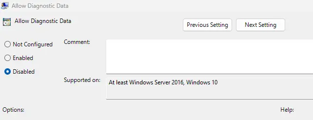 4. 现在查看右侧部分并找到标记为允许诊断数据 (Windows 11) 或允许遥测 (Windows 10) 的键。