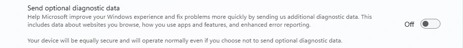 3. 找到发送可选的诊断数据选项并关闭它旁边的切换按钮。