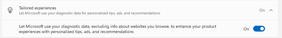 4. 接下来,单击量身定制的体验选项以查看更多设置。