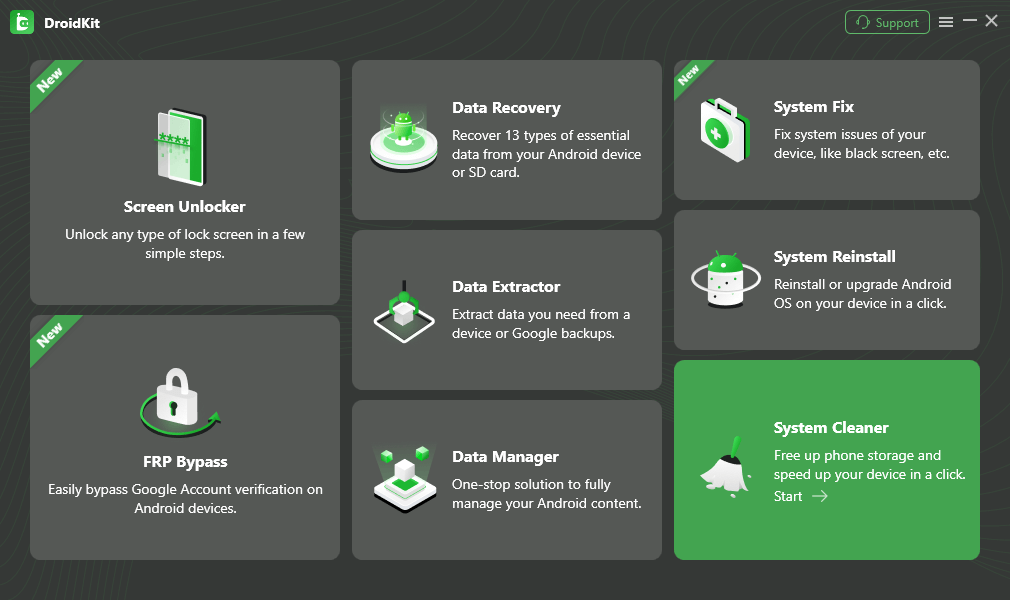 有一个更好的方法可以让您的手机内存保持干净并保持手机完美运行,您可以免费下载并试用一个工具。 DroidKit 让您可以轻松地从 Android 手机中删除系统垃圾,并且可以执行许多其他旨在实现高效数据管理的操作。这款多功能应用程序可用于数据恢复、系统修复、屏幕解锁和绕过 FRP 锁,无需用户具备大量技术专业知识。