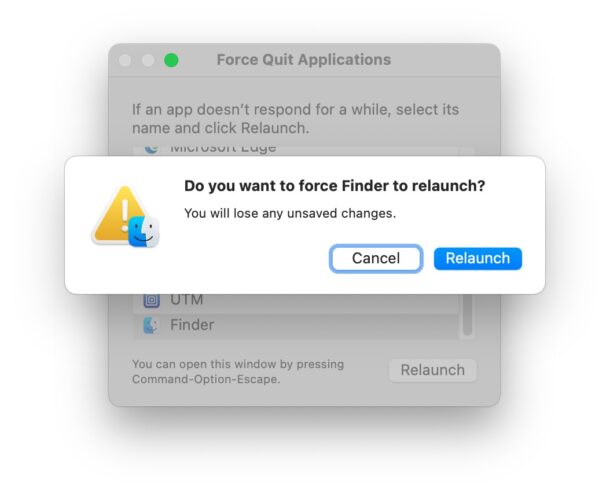 重新启动查找器以修复Mac上空的“恢复”