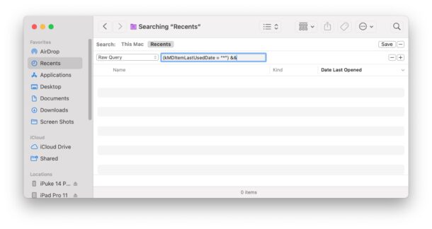 此外,一些Mac用户已经注意到,他们可以将与“ Recents”文件夹关联的搜索参数更改为以下内容: