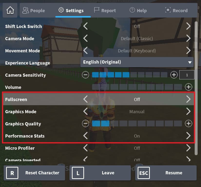 调整 Roblox 游戏内设置