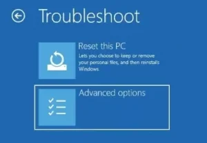 2. PC 在 WinRE 中启动后,单击“故障排除”,然后单击“高级选项”。