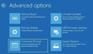 3. 从“高级选项”菜单中选择“命令提示符”。