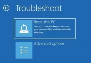 2. 从“故障排除”菜单中,选择“重置此电脑”。