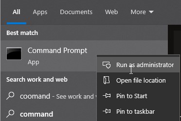 步骤 1 –按开始按钮并搜索 CMD。使用“以管理员身份运行”选项启动命令提示符。