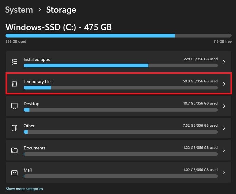 如果还有足够的可用存储空间,您可以预览。如果没有,那么您可以简单地删除临时文件,这些文件在很多情况下会占用您已用存储空间的很大一部分。临时文件是由您的程序保存的文件,应不时删除。