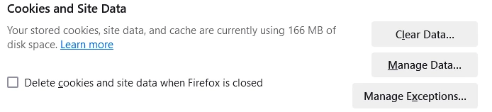 第 5 步:单击“管理例外”按钮,确保启用所有 cookie。