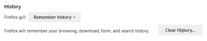 第 7 步:接下来,导航至“历史记录”部分并确认 Firefox 已设置为“记住历史记录”。