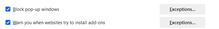 步骤 8:向下滚动到“权限”部分,找到“阻止弹出窗口”,然后单击“例外”。确保允许该网站作为“阻止弹出窗口”设置的例外。