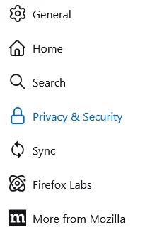 步骤 3:单击左侧面板中的隐私和安全选项卡。
