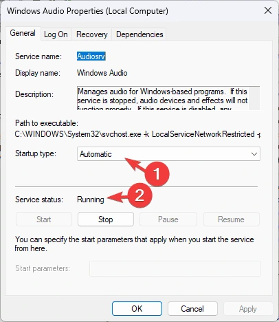 步骤 4:右键单击“Windows 音频”并选择“属性”。