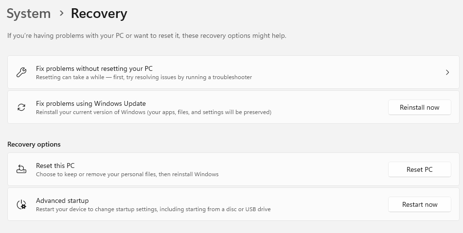如果以前的解决方案不起作用,重置 Windows 可能是解决此问题的最后一步以下是重置 Windows PC 的方法: