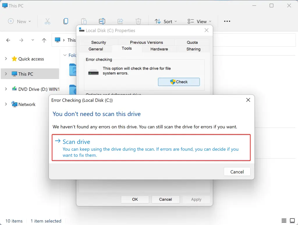 方法#2。扫描硬盘是否有错误