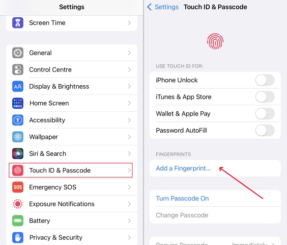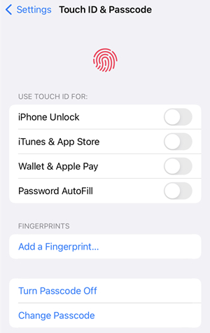 如果前面的步骤没有帮助,您可以尝试关闭 Touch ID,然后再次打开,以解决 Apple Touch ID 在 iPhone 上无法使用的问题。