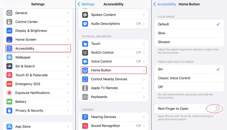 步骤1。导航至设置 > 辅助功能,然后点击家按钮。