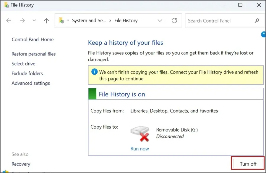 方法 9:关闭文件历史记录