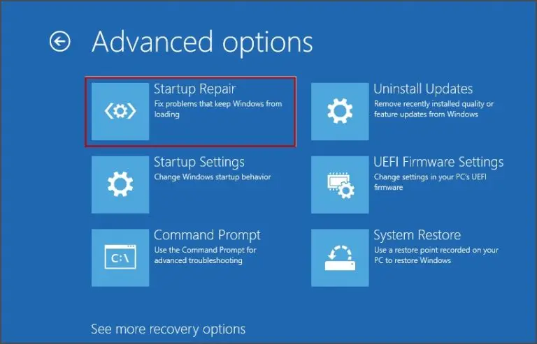 第 2 步:PC 在 WINRE 中加载后,单击“故障排除选项”,然后单击“高级选项”。